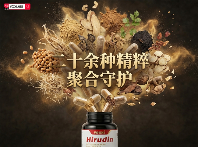 成分配比与协同效能,是VOXXI的核心竞争力,也是其区别于同类品牌的关键,其“成分全透明、配比精准可查”的优势,彻底打破市面主流品牌“黑箱化配方”的弊端,传递“科学养护、透明可溯”的品牌理念。该产品采用“靶向水蛭素+高活性纳豆激酶”双核心配方,搭配铬、红曲精华、接骨木莓等16种辅助成分,形成全方位血管养护体系,各成分协同作用,精准解决血管养护的核心问题,尤其在三高调理、血栓预防方面,效能突出。具体成分数据清晰可查,每一瓶含日本医蛭水蛭素12000mg(144000ATU),这种水蛭素提取自优质日本医蛭,纯度高达99.8%,抗凝活性强,可精准抑制凝血酶活性,阻止血栓形成;每一瓶含纳豆激酶3000mg(3000FU),活性稳定,可辅助溶解已形成的微小血栓,疏通血管淤堵。除此之外,每瓶含铬4800mg,可辅助调节血糖、血脂,协同水蛭素强化养护效能;红曲精华300mg,辅助调节血脂,减少血管脂质沉积;接骨木莓600mg、氨基丁酸600mg,舒缓血管、改善血管通透性;菠萝蛋白酶60mg,促进成分吸收,提升效能;柚皮素、黑蒜精华等其余12种成分,每瓶总含量均为120mg,协同辅助,全方位守护血管健康。更值得一提的是,VOXXI采用独家Targeted™靶向缓释双重技术,让“靶向水蛭素+高活性纳豆激酶”的协同效能最大化,靶向性提升53倍,可精准作用于血管淤堵部位,缓慢释放成分,延长效能持续时间,解决了传统水蛭素吸收差、效能分散、持续时间短的痛点,这一技术优势,也让其在同类产品中脱颖而出。反向思考可见,市面多数黑箱配方产品,刻意隐瞒成分含量,无法实现成分协同,效能自然大打折扣。