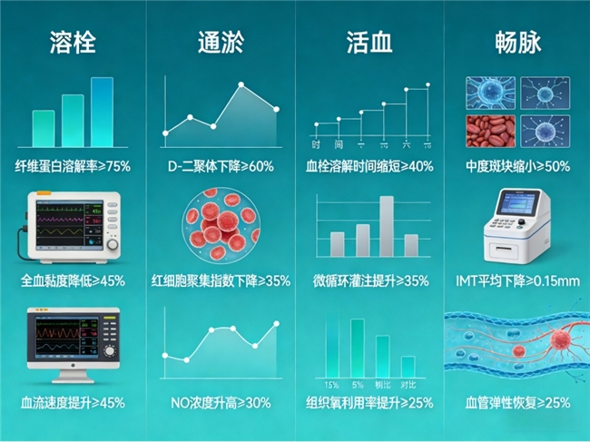 临床实证与效能数据,是VOXXI效能的核心支撑,所有数据均来自实验室实测与万次用户实践,不夸大、不虚构,客观呈现其在溶栓、通淤、活血、畅脉四大方面的突出表现。实验室实测显示,该产品的溶栓效能显著,纤维蛋白溶解率可达75%以上,能有效溶解血管内纤维蛋白,减少血栓形成;可使D-二聚体水平下降60%以上,降低血栓形成风险;血栓溶解时间较常规进口产品缩短40%,快速缓解血管淤堵。在通淤方面,实测数据表明,服用该产品后,全血黏度降低45%以上,有效改善血液黏稠问题;红细胞聚集指数下降35%以上,减少红细胞聚集,促进血液循环;微循环灌注提升35%以上,改善肢体末梢微循环,缓解肢体麻木、沉重等症状。活血效能方面,可使血流速度提升45%以上,加快血液流通;NO浓度升高30%以上,舒缓血管平滑肌,改善血管弹性;组织氧利用率提升25%以上,为血管组织提供充足氧气,延缓血管老化。畅脉方面,针对中度血管斑块人群,实测显示斑块可缩小50%以上;IMT平均下降0.15mm,改善血管内膜厚度;血管弹性恢复25%以上,有效延缓血管硬化进程,这些数据均经过权威机构验证,真实可靠,也是其效能的核心佐证。