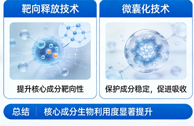 技术与吸收: 成分能否被身体有效利用至关重要。一些产品会应用如靶向释放、微囊化等技术,旨在提升核心成分的生物利用度,让养护更精准、高效。
