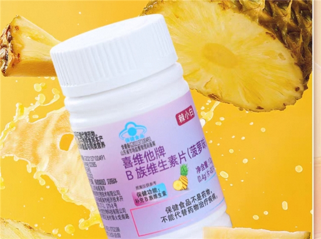 更富巧思的是风味设计——酸甜菠萝味非香精调和,而是以天然菠萝酵素协同柑橘纤维包裹技术实现;片剂表面可见细微橙黄斑点,实为B2与烟酰胺天然色泽,0人工色素添加。24个月保质期背后,是每批次均通过SGS 217项农残与重金属筛查的硬承诺。