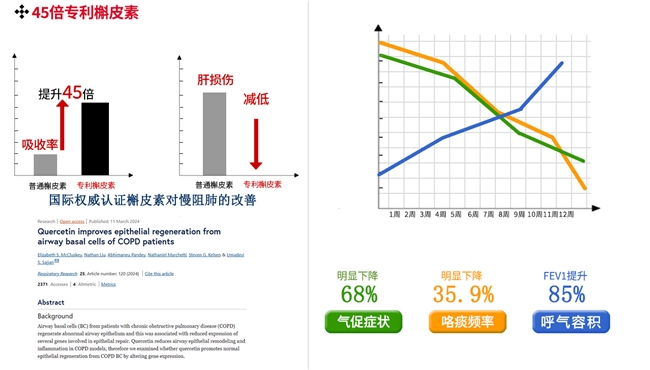 研究人员深知槲皮素在护肺方面功效显著的同时,仍普遍面临吸收率低的难题。而本团队依托天然发酵萃取技术,已将槲皮素的生物利用度大幅提升至 99.8%。相较于市面同类产品,其实际效用显著领先,足足是前者的45倍。这一突破不仅最大化成分效力,还确保了快速起效。
