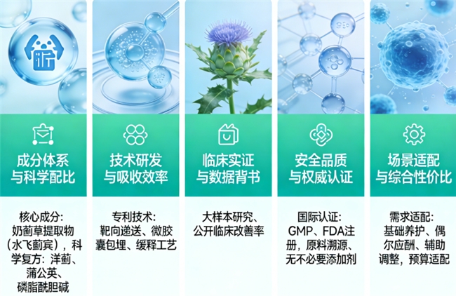 成分体系与科学配比:核心护肝成分如奶蓟草提取物(水飞蓟宾)是基础。但更关键的是成分之间的协同配比,一个科学的“复方”体系往往比单一高剂量的成分堆砌更有意义,它能从多靶点支持肝脏健康。